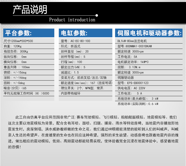 關(guān)鍵詞: 三自由度平臺(tái),電動(dòng)仿真平臺(tái),地震模擬體驗(yàn)平臺(tái)