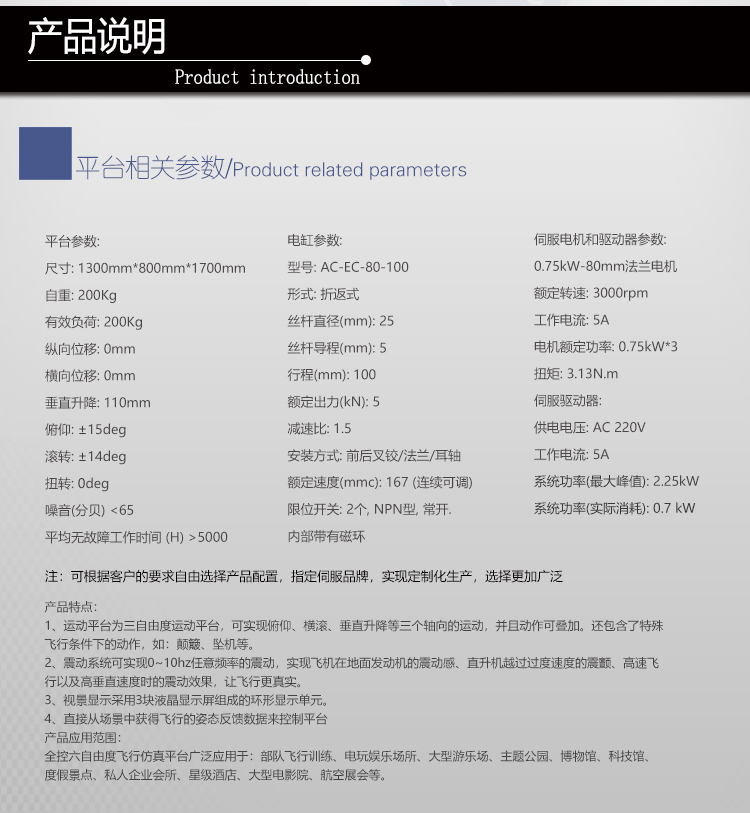 關(guān)鍵詞: 三自由度電動仿真平臺 飛行模擬駕駛體驗平臺