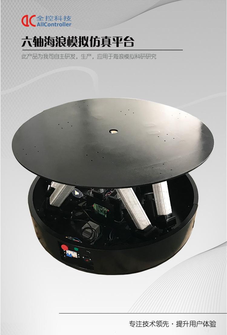 該平臺(tái)是南京全控自主研發(fā)的六自由度海浪模擬運(yùn)動(dòng)平臺(tái),應(yīng)用于大學(xué)科研研究,模擬真實(shí)海浪及海況情況,輔助配合客戶完成科研研發(fā)和數(shù)據(jù)測(cè)試。