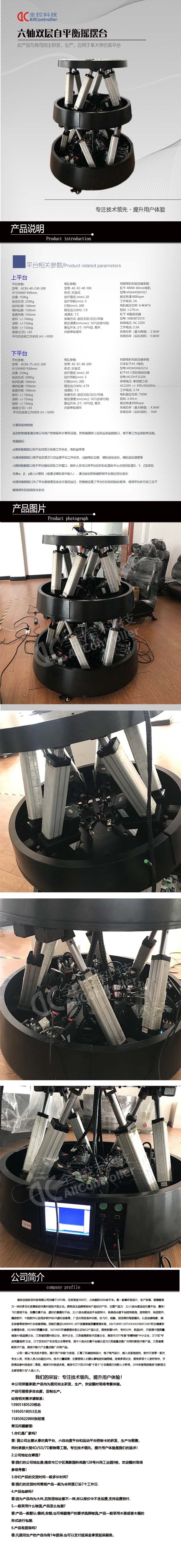 該平臺(tái)是我公司根據(jù)大學(xué)要求定制的一款六自由度雙層自平衡模擬平臺(tái),上下兩個(gè)六自由度平臺(tái)不斷調(diào)整修正平臺(tái)姿態(tài),達(dá)到自平衡的效果,應(yīng)用于大學(xué)科研研究。