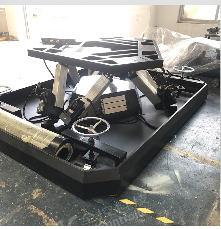 六自由度平臺在仿真模擬飛行上的應(yīng)用:飛機飛行過程中經(jīng)常遭遇到低空風(fēng)切變、大氣紊流等各類復(fù)雜大氣擾動現(xiàn)象,威脅飛行安全的主要危險。一旦飛行員不及時規(guī)避或操縱失誤,可能造成嚴(yán)重飛行事故。六自由度飛行模擬器能逼真地復(fù)現(xiàn)飛機在空中的飛行狀態(tài)和環(huán)境的地面設(shè)備,在運動過程中飛行員能感覺到的瞬時過載動感,重力分量的持續(xù)感及部分抖動沖擊信息,使飛行仿真更加逼近真實飛行。