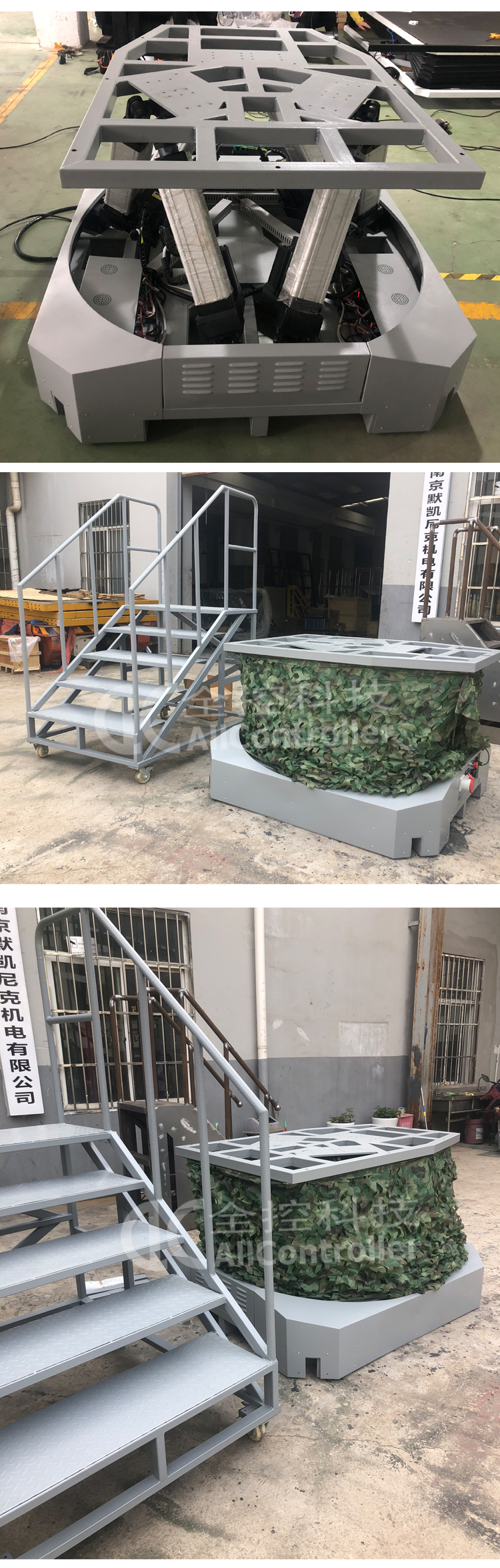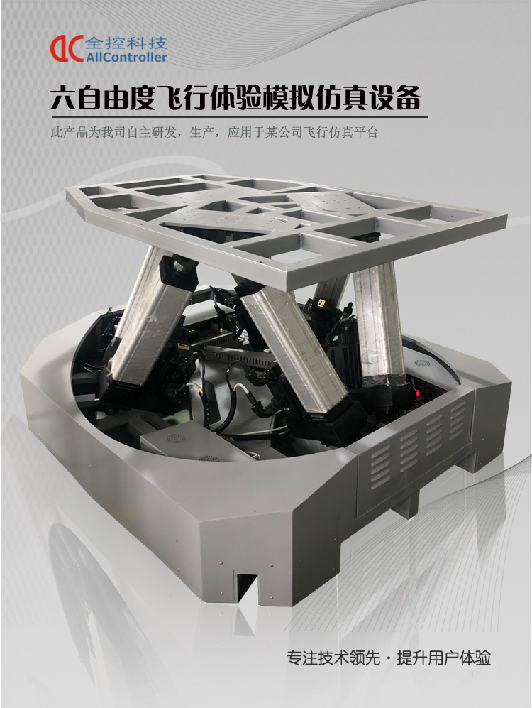 采用六自由度動感平臺系統(tǒng),要求做到: 1、加減速、失速、滑行、滑跑、俯沖、爬升、傾斜、左偏轉(zhuǎn)、右偏轉(zhuǎn)、前后左右移動; 2、著陸接地姿態(tài)和碰撞; 3、使用剎車時出現(xiàn)的運動; 4、起落架支柱動態(tài)特性; 5、滑跑、垂直氣流等引起的抖振。 6、動感平臺采用六自由度伺服電動缸運動平臺; 7、六自由度平臺包含以下組件: (1)6支電動缸,單支電動缸的行程不低于200MM; (2)6套國產(chǎn)電機及驅(qū)動器,每套電機的功率不低于1000W,轉(zhuǎn)速不低于3000轉(zhuǎn)。 (3)六自由度平臺技術(shù)指標: