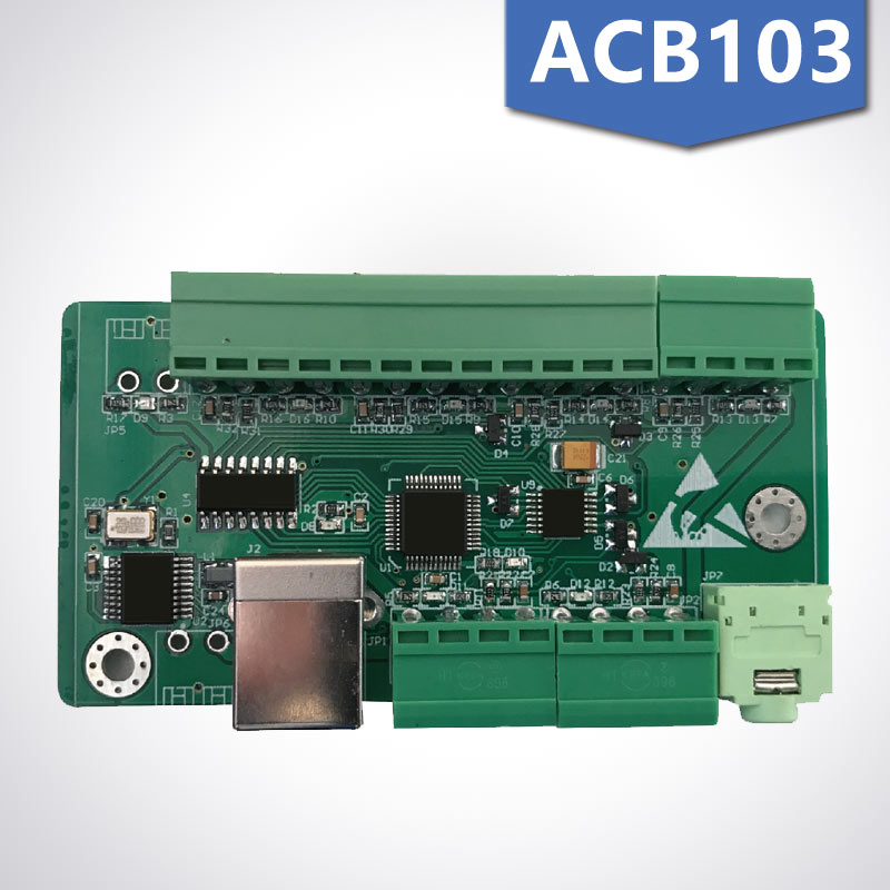 ACB104具有8通道模擬量和8通道脈沖量信號(hào)輸出功能,可接入8臺(tái)單車的方向轉(zhuǎn)角和車輪轉(zhuǎn)速來(lái)實(shí)現(xiàn)車隊(duì)組網(wǎng)功能。板載資源如下: