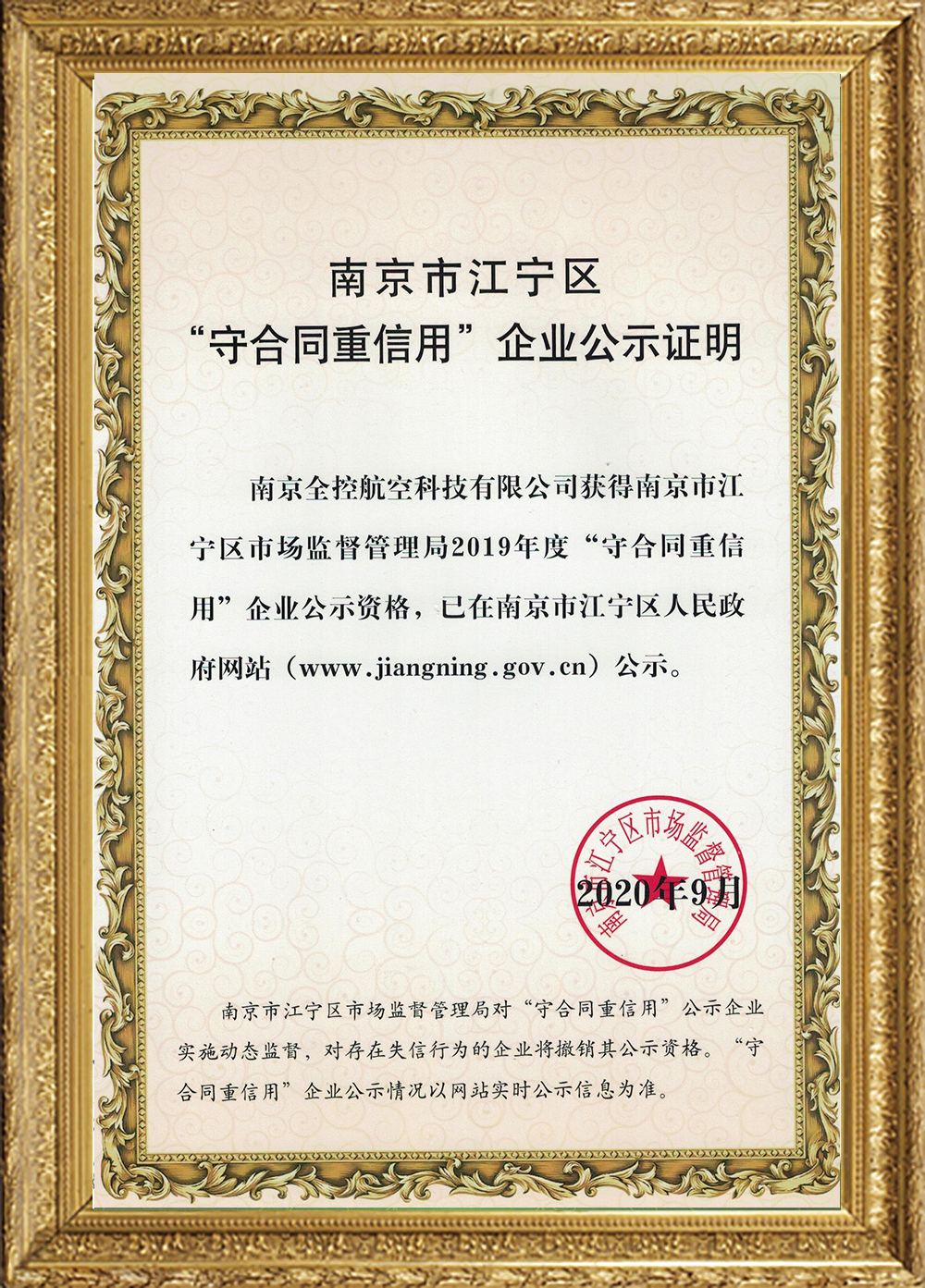 “守合同重信用”企業(yè)公示證明