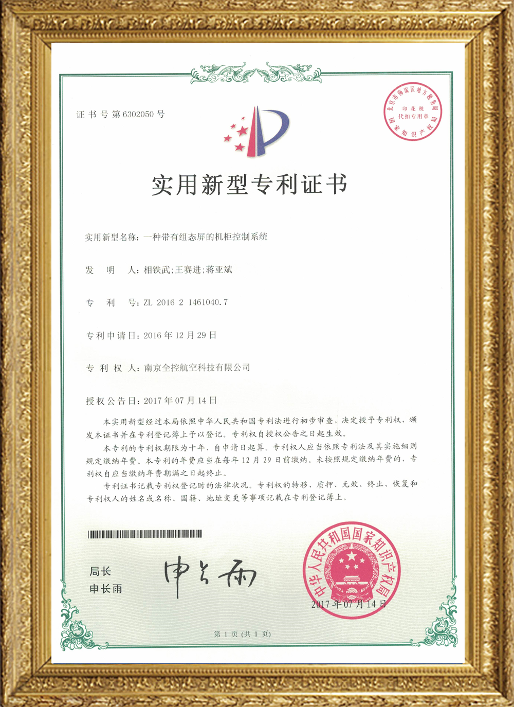 實(shí)用新型證書