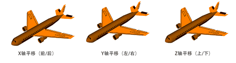 剛體可以在3個自由度中平移:向前/向后,向上/向下,向左/向右。