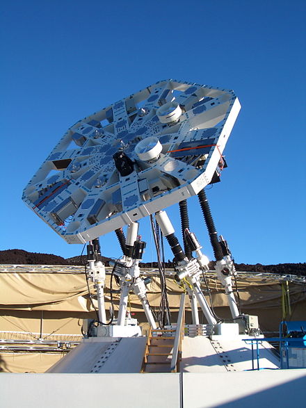 Stewart平臺(tái)的主要應(yīng)用之一是目標(biāo)跟蹤。在此應(yīng)用中,目標(biāo)可能是平臺(tái)移動(dòng)時(shí)的靜止位置(例如對(duì)地靜止衛(wèi)星或雷達(dá)/搜索地面目標(biāo)),或者目標(biāo)可能是平臺(tái)靜止時(shí)移動(dòng)的目標(biāo)(例如太陽(yáng)能/星體跟蹤器應(yīng)用)。射電望遠(yuǎn)鏡實(shí)驗(yàn)是后一種情況的一個(gè)很好的例子,在這種情況下,借助Steward平臺(tái)將望遠(yuǎn)鏡的天線對(duì)準(zhǔn)目標(biāo)星系/星體。