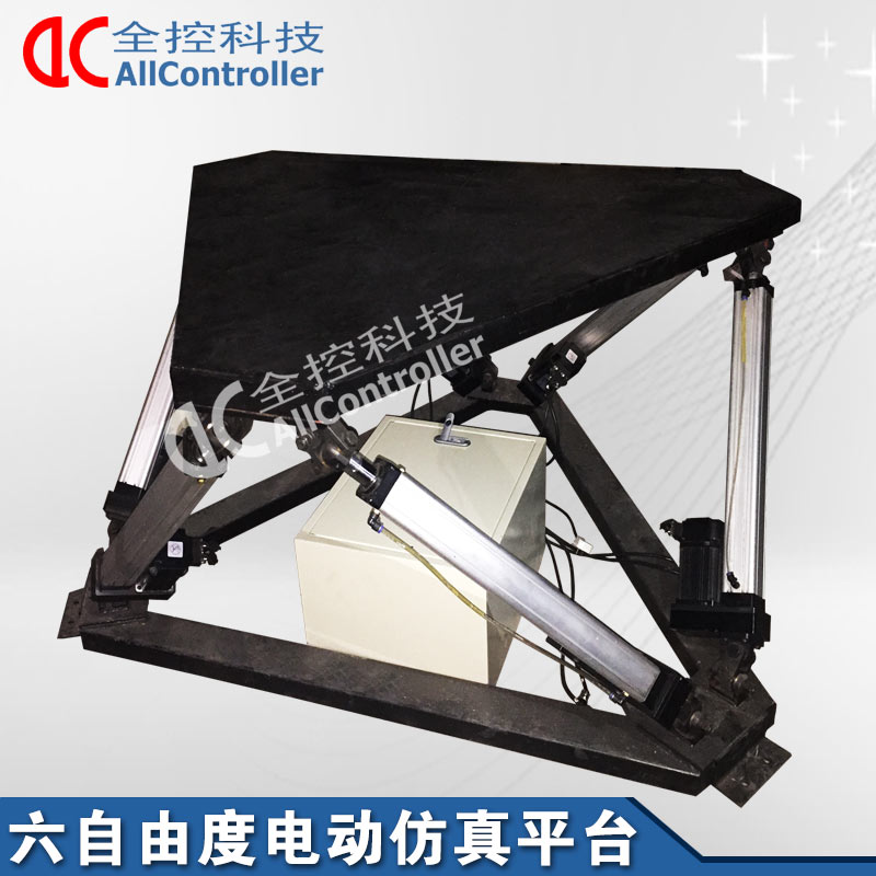 六自由度運動平臺是由六支作動筒,上、下各六只萬向鉸鏈和上、下兩個平臺組成,下平臺固定在基礎(chǔ)上,借助六支作動筒的伸縮運動,完成上平臺在空間六個自由度(X,Y,Z,α,β,γ)的運動,從而可以模擬出各種空間運動姿態(tài)??蓮V泛應用到各種訓練模擬器如飛行模擬器、艦艇模擬器、海軍直升機起降模擬平臺、坦克模擬器、汽車駕駛模擬器、火車駕駛模擬器、地震模擬器以及動感電影、娛樂設(shè)備等領(lǐng)域,甚至可用到空間宇宙飛船的對接,空中加油機的加油對接中。在加工業(yè)可制成六軸聯(lián)動機床、靈巧機器人等。由于六自由度運動平臺的研制,涉及機械、液壓、電氣、控制、計算機、傳感器,空間運動數(shù)學模型、實時信號傳輸處理、圖形顯示、動態(tài)仿真等等一系列高科技領(lǐng)域,因而六自由度運動平臺的研制變成了高等院校、研究院所在液壓和控制領(lǐng)域水平的標志性象征。