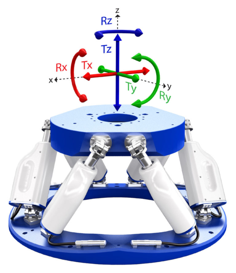 六足機(jī)器人是一種平行運(yùn)動(dòng)機(jī)構(gòu),具有六個(gè)自由度:X,Y,Z,側(cè)傾,俯仰和偏航。