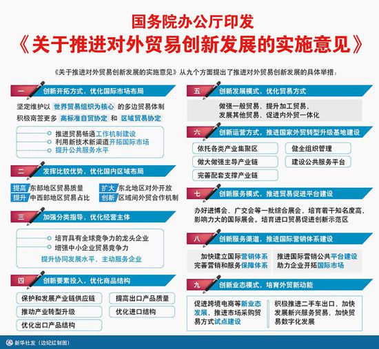 國務院辦公廳今天印發(fā)了《關(guān)于推進對外貿(mào)易創(chuàng)新發(fā)展的實施意見》。意見指出,各省、自治區(qū)、直轄市人民政府,國務院各部委、各直屬機構(gòu)要利用新技術(shù)新渠道開拓國際市場。充分運用5G、虛擬現(xiàn)實、增強現(xiàn)實、大數(shù)據(jù)等現(xiàn)代信息技術(shù),支持企業(yè)利用線上展會、電商平臺等渠道開展線上推介、在線洽談和線上簽約等。推進展會模式創(chuàng)新,探索線上線下同步互動、有機融合的辦展新模式。
