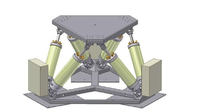 六自由度運(yùn)動(dòng)平臺(tái),由上、下平臺(tái)和六個(gè)可伸縮的電動(dòng)缸組成。上、下平臺(tái)與電動(dòng)缸之間,分別通過(guò)虎克鉸或球鉸相連,因此上、下平臺(tái)分別有6個(gè)連接點(diǎn)。上平臺(tái)為動(dòng)平臺(tái),在六個(gè)電動(dòng)缸的驅(qū)動(dòng)下進(jìn)行空間中的六自由度運(yùn)動(dòng),下平臺(tái)為靜平臺(tái),靜止不動(dòng),上、下平臺(tái)為相似的六邊形,如下圖所示。六自由度并聯(lián)機(jī)構(gòu)具有速度快、負(fù)載大、精度高等特點(diǎn),該結(jié)構(gòu)作為運(yùn)動(dòng)平臺(tái)有著廣泛的應(yīng)用空間。。另外,還有六自由度搖擺臺(tái)的基本功能大家了解嗎?包括運(yùn)動(dòng)姿態(tài)模擬、運(yùn)動(dòng)參數(shù)設(shè)定和運(yùn)動(dòng)信息顯示功能這三個(gè)功能,下面來(lái)看看具體的分析介紹吧。