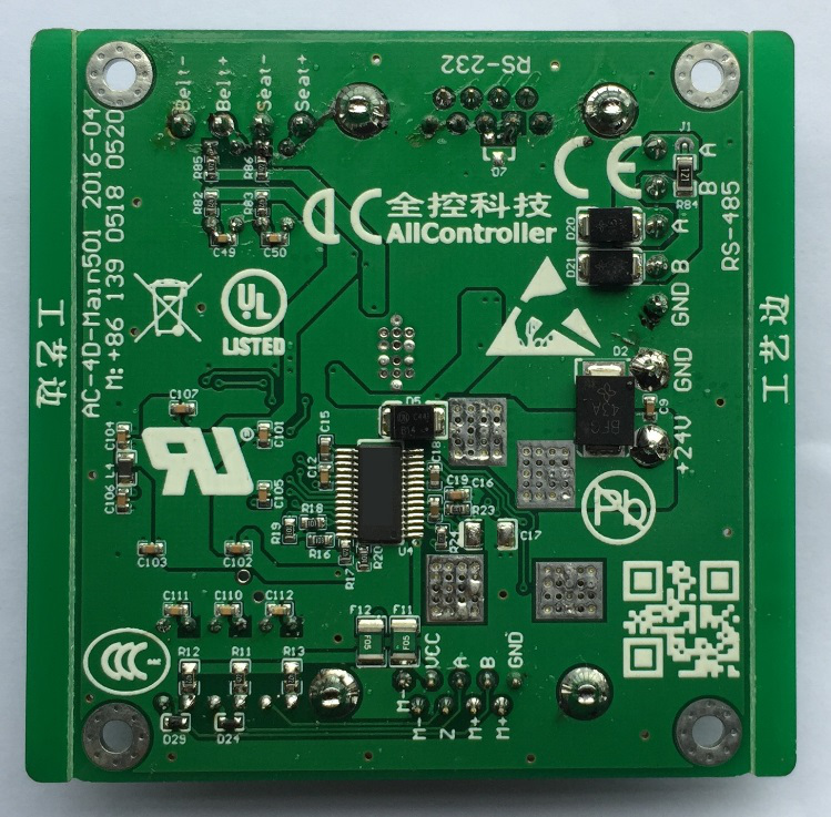 我公司在2016年4月正式推出了ACB501型單通道大功率有刷電機(jī)型平臺(tái)運(yùn)動(dòng)控制卡,它僅為1自由度電動(dòng)平臺(tái)控制器,板子尺寸只有70*70mm,約為成年人的半個(gè)手掌大小。它主要用作在小型四軸/七軸旋轉(zhuǎn)平臺(tái)的旋轉(zhuǎn)軸上使用,也可用在駕駛模擬器上的方向盤/搖桿的力反饋控制。其最大的輸出電流可達(dá)20A,當(dāng)用于36V的電機(jī)控制時(shí),最大輸出功率720W。另外在控制的方式選擇上也相當(dāng)靈活,可以選用高速下橋MOSET續(xù)流、高速下橋Diode續(xù)流、低速下橋續(xù)流和四象限控制等方式。使得電機(jī)處于顫振模式,減小了電機(jī)的起動(dòng)時(shí)間,進(jìn)而提高了被控對(duì)象的反應(yīng)速度。