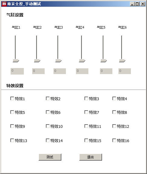 測試電缸/油缸:在測試界面上,將“氣缸設(shè)置”下方的“缸1”中的滾動(dòng)條向上拖動(dòng),這時(shí)平臺(tái)的1號(hào)位置的電缸/油缸會(huì)上升到相應(yīng)的位置;向下拖動(dòng)時(shí),1號(hào)缸會(huì)下降到相應(yīng)的位置。依次按此操作測試缸2、缸3、缸4、缸5、缸6。如果都能正常上升和下降,則平臺(tái)工作正常。