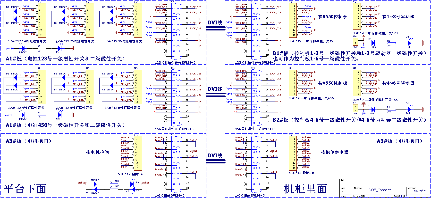 為了在使用中減少延長線纜的數(shù)量,使用DVI24+1線纜來作為一級磁性開關(guān)、二級磁性開關(guān)以及抱閘線的連接。